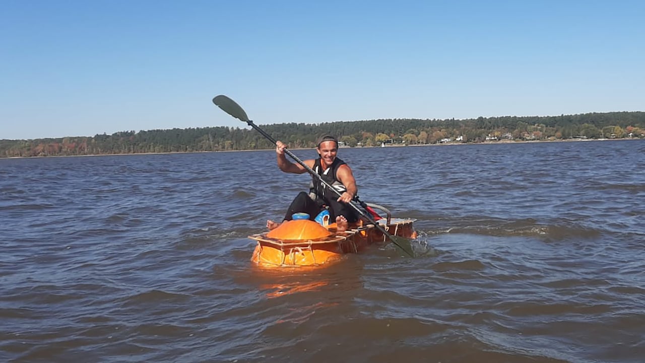 Marc Néron tells The National about the moment he built a boat out of giant pumpkins and crossed the Ottawa River from Oka to Hudson, Que.