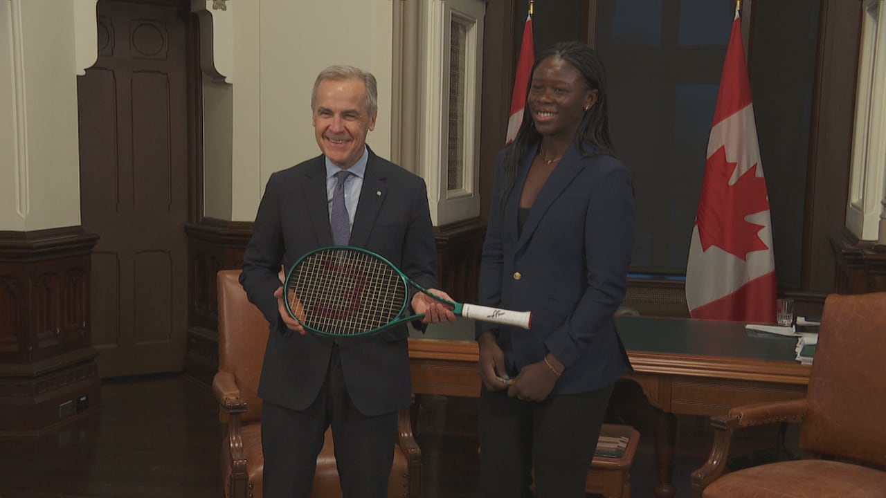 Canadian tennis star Victoria Mboko presented Prime Minister Mark Carney with the racket she used to secure her first WTA victory at the Canadian Open in Montreal this year.