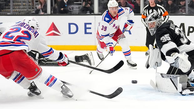 Los Angeles Kings goaltender Darcy Kuemper, who is expected to play for Canada at the Olympics next month, left Tuesday night’s game against the visiting New York Rangers after a collision in the crease late in the first period.